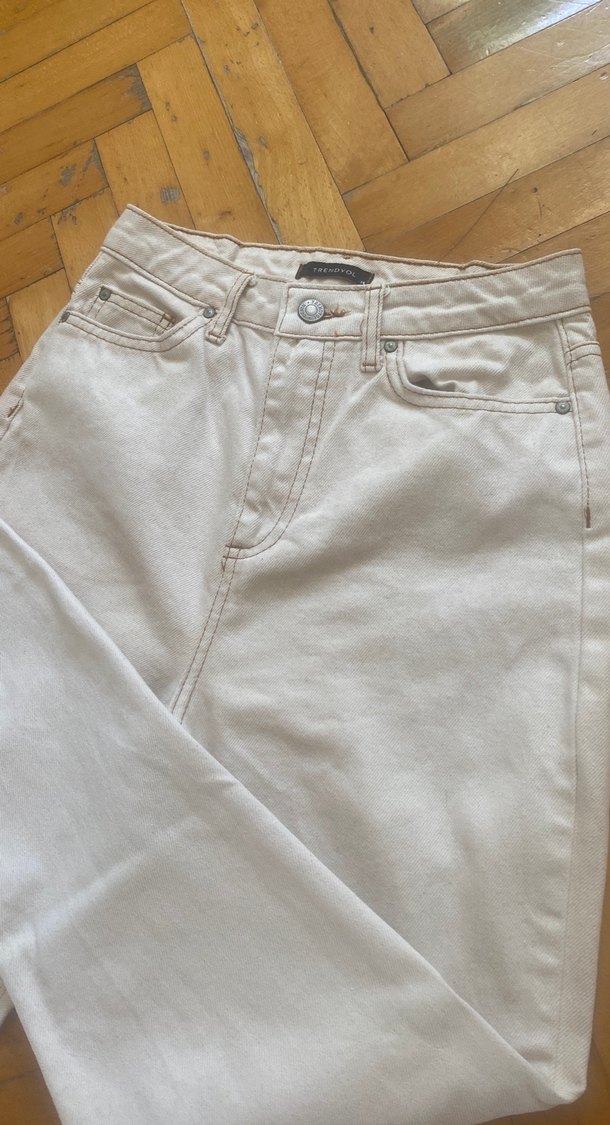 Bej renkli, pamuklu kadın kot pantolon. Regular fit ve normal boyda, desen içermeyen tasarımıyla rahat ve şık bir görünüm sağlar. Günlük kullanıma uygundur.