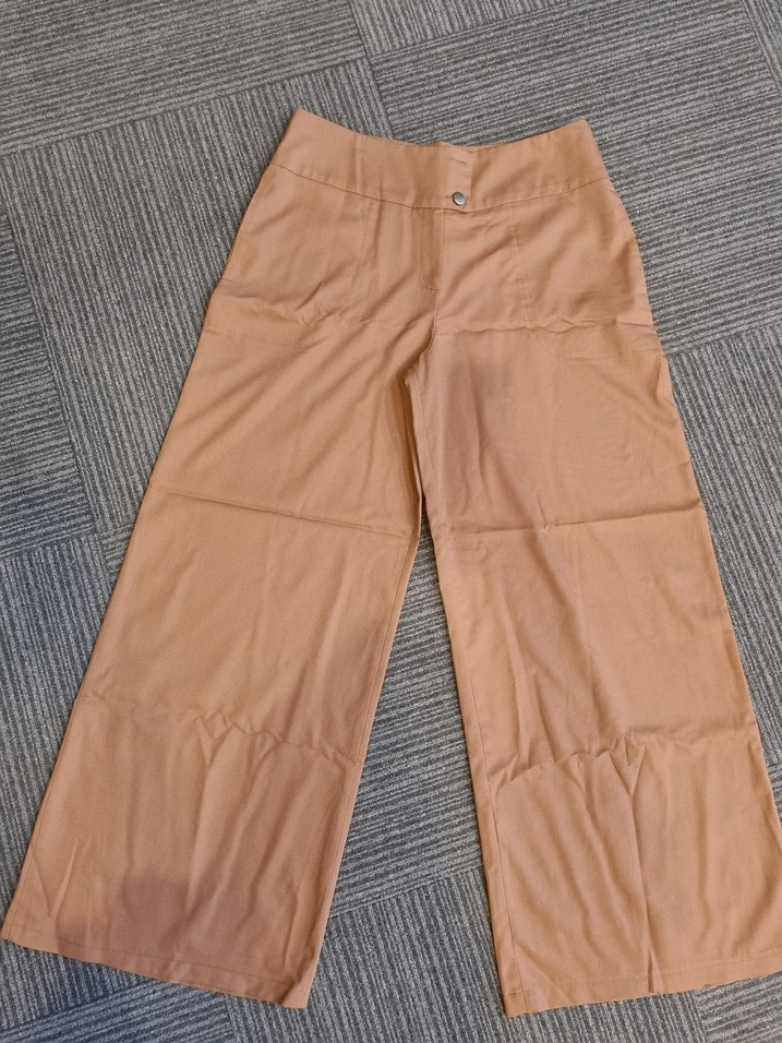 42 beden Bej renkli, normal boy krep kumaş bol paça pantolon, rahat kesimiyle günlük sokak stiline uygun, yumuşak sentetik kumaştan üretilmiştir.