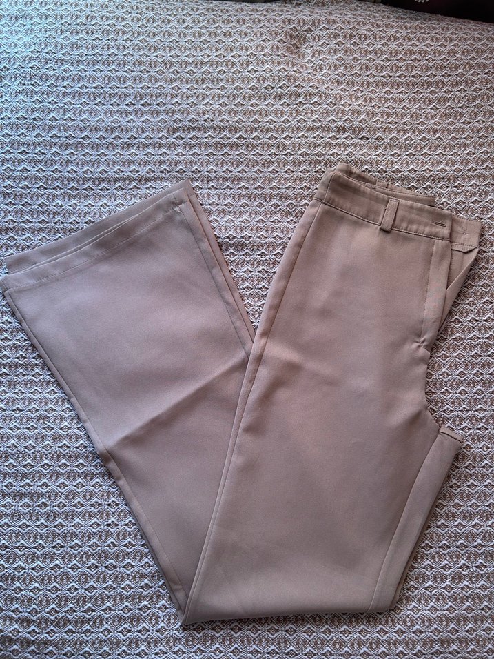 Düz bej renkli, regular fit kadın kumaş pantolon. Ofis kullanımı için uygun, yumuşak sentetik kumaştan üretilmiştir. ✨ birkaç kez giyildi