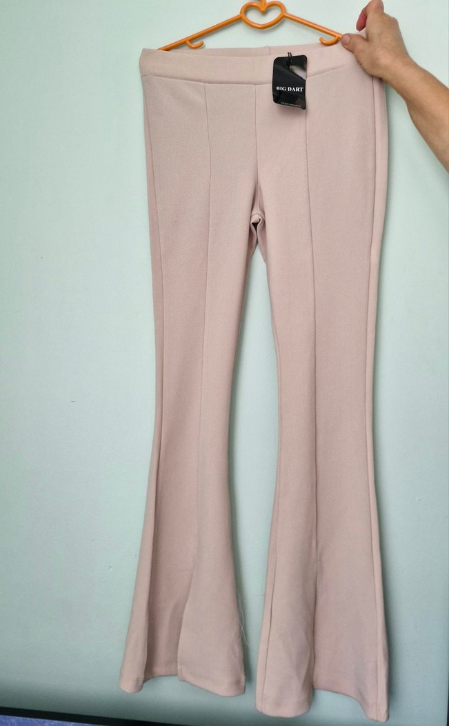 Bej renkte, düz desenli ve sentetik kumaştan yapılmış, rahat ve şık kadın pantolonu. Günlük kullanıma uygun, minimal ve sokak stiline uygun tasarım.