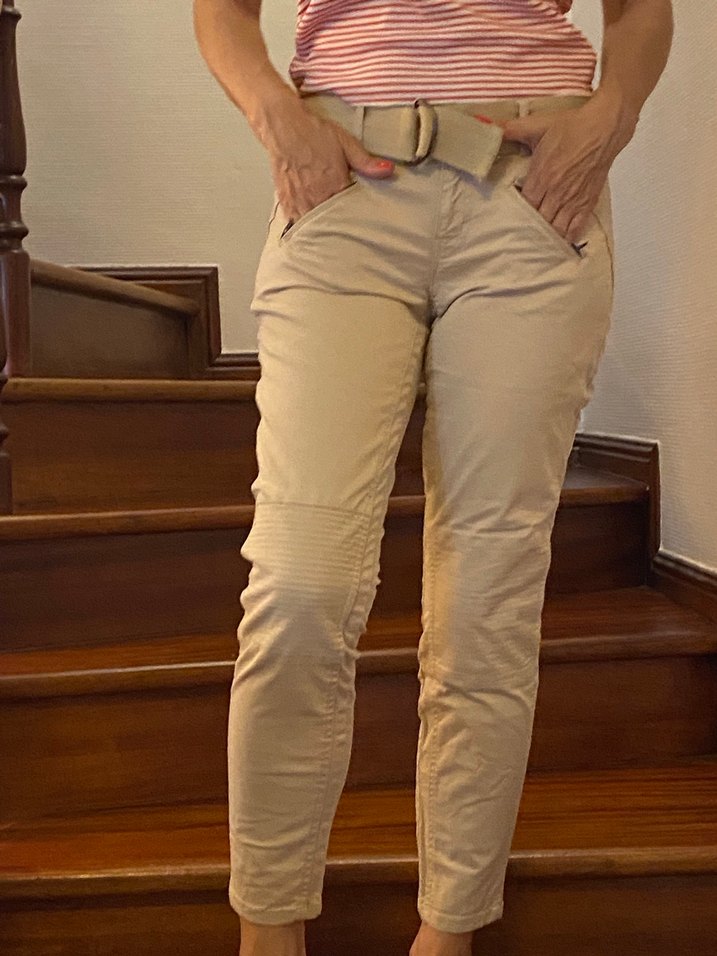 Bej renkte, kemerli ve normal boy uzunluğunda kadın kumaş pantolon. Kemeri hediye olarak göndereceğim. Arka paçalar fermuar detaylıdır.