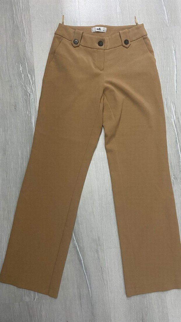 Bej renkte, midi boy, düz kesim kadın kumaş pantolon. Düz ve desen içermeyen, sentetik kumaştan üretilmiş, sade ve günlük kullanıma uygun şık bir model.