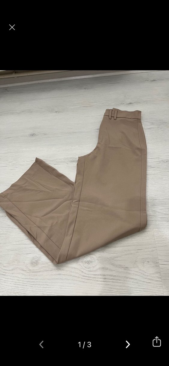 Bej renk, midi boy, düz desenli kadın kumaş pantolon. Ofis kullanımı için uygun, rahat sentetik kumaştan üretilmiştir. Yüksek bel zara marka etiket kesik sıfır