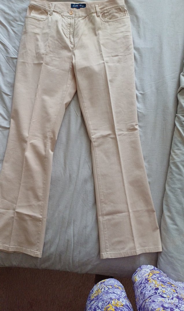 Bej renk, midi boy ve regular fit kadın kumaş pantolon.%100 pamuklu kumaş Yumuşak gündelik kullanıma uygun sade ve şık tarzda.