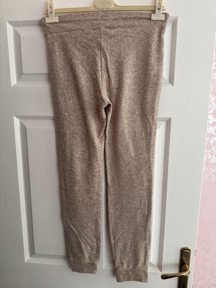 Bej renkli, midi boy, vücuda oturan kadın kumaş pantolon, yumuşak sentetik kumaştan, rahat ve şık bir görünüm sunar.