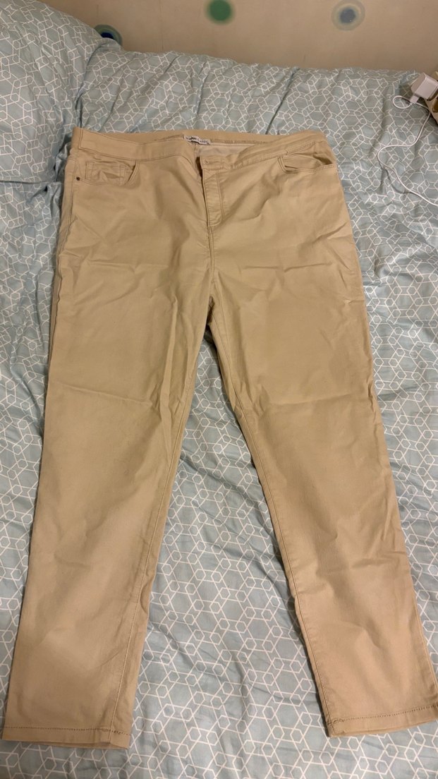 Bej renkli, midi boy, regular fit kadın kumaş pantolon. Yumuşak sentetik kumaştan üretilmiş, günlük rahat kullanım için uygun, sade ve şık tarzda.