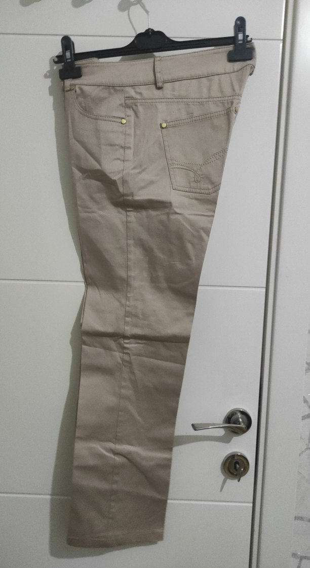 Bej renkli, düz kumaştan üretilmiş, midi boy ve regular fit kadın pantolonu. Günlük kullanıma uygun, rahat ve şık bir model.
