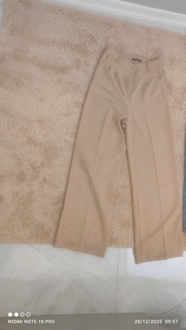 Tuba butuk palazzo Bej Kadın Kumaş Pantolon i Boy Rahat Kesim