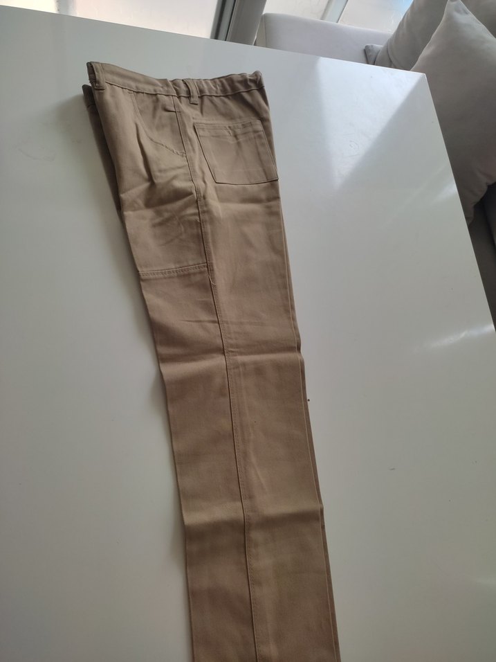 Bej renkte, normal boyda, rahat kesim kadın kumaş pantolon. Düz ve desensiz yapısı, sentetik kumaştan üretilmiştir. Günlük kullanıma uygundur.