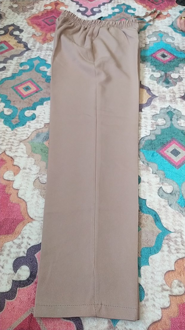 Bej renkte, uzun boy, regular fit kesim ve pilili tasarıma sahip kadın kumaş pantolon. Günlük kullanıma uygun minimal tarzda, sentetik dokulu kumaştan.boyu 98cm beli 40cm