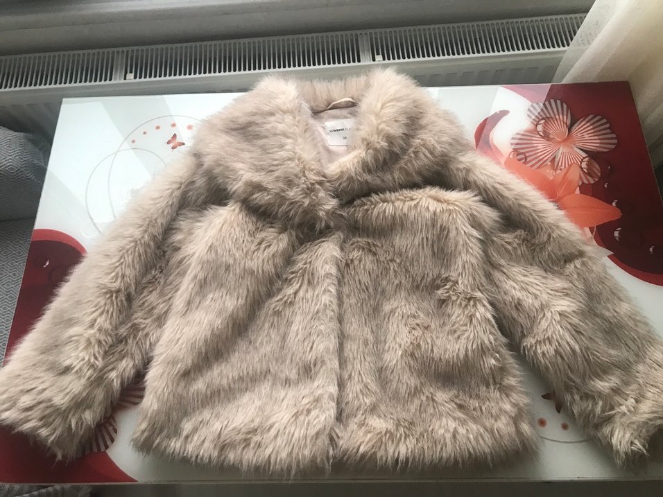 Bej renkli, uzun kollu, normal boy midi suni kürk ceket. Yumuşak sentetik kumaştan, kürk detaylı ve notched lapel yaka ile gündelik kullanıma uygun.