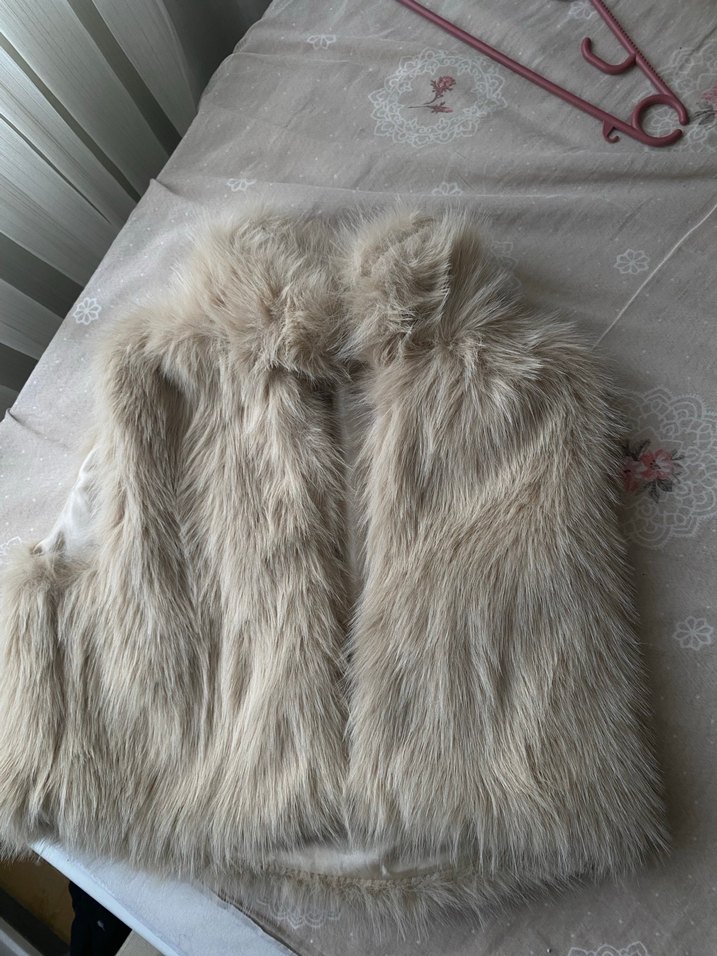 Bej Kadın Kürk Detaylı Kolsuz Yelek