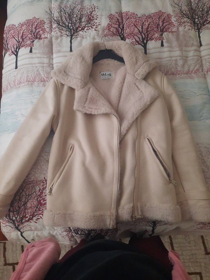 Bej kadın ceketi, yumuşak kürk detaylı ve kesik yakalıdır. Rahat kesim, uzun kollu ve midi boydur. Sıcak ve yumuşak kumaştan üretilmiştir, fermuarlı ceplidir. sadece 2 3 kere giyildi hiçbir kusuru yok. kemeri vardır