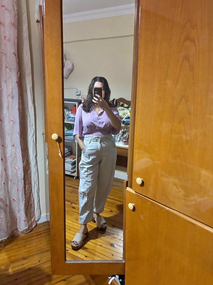Bej renkli, pamuk kumaştan kadın loose fit midi pantolon, rahat kesimi ve gündelik kullanım için uygun şıklığıyla öne çıkar.