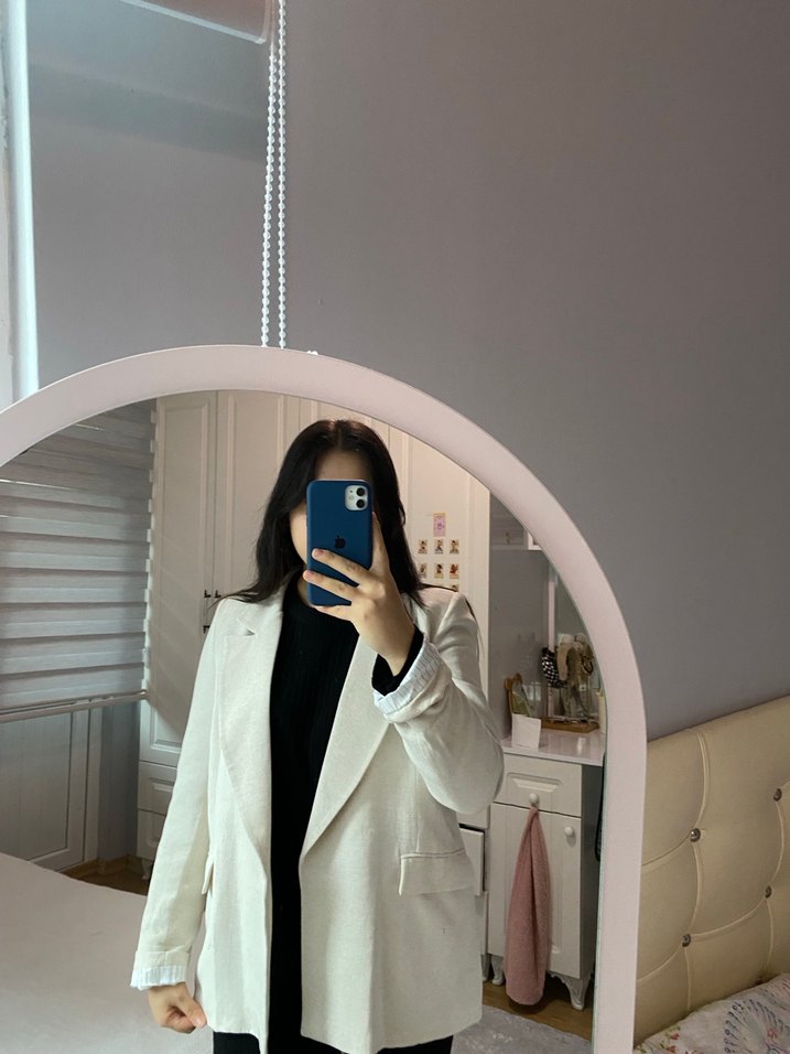 Keten krem rengi 36 beden blazer ceket 65 kiloyum bana böyle oluyor #blazerceket #addax