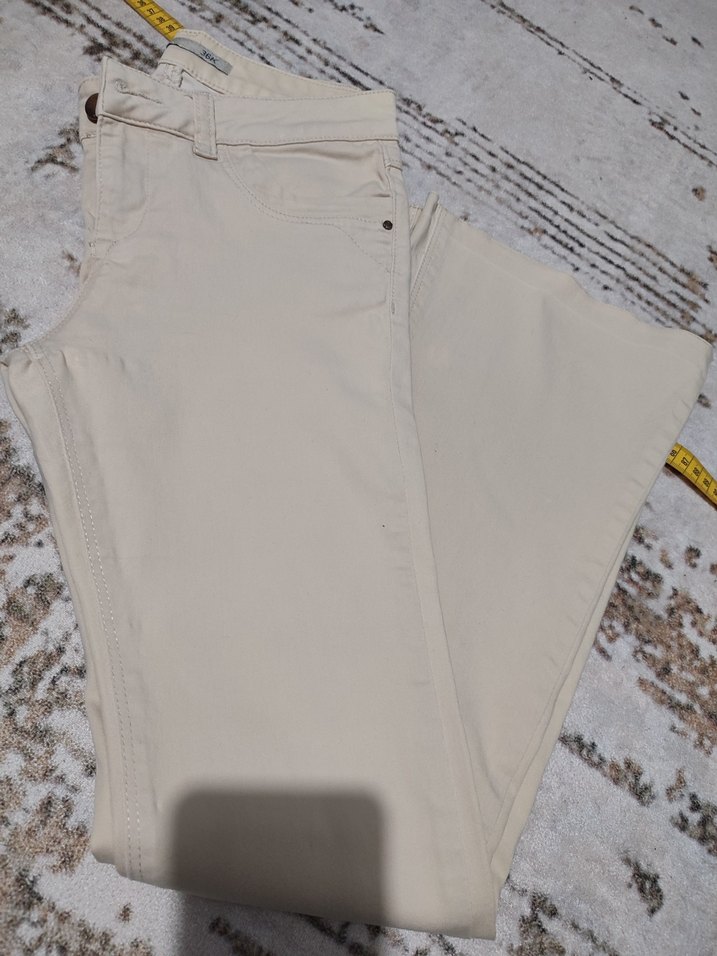 Bej renkli, pamuk kumaştan, midi boy ve regular fit kadın pantolon. Rahat ve şık, outdoor sokak stiline uygun. esnek vücudu saran çok güzel bı kumaşı var