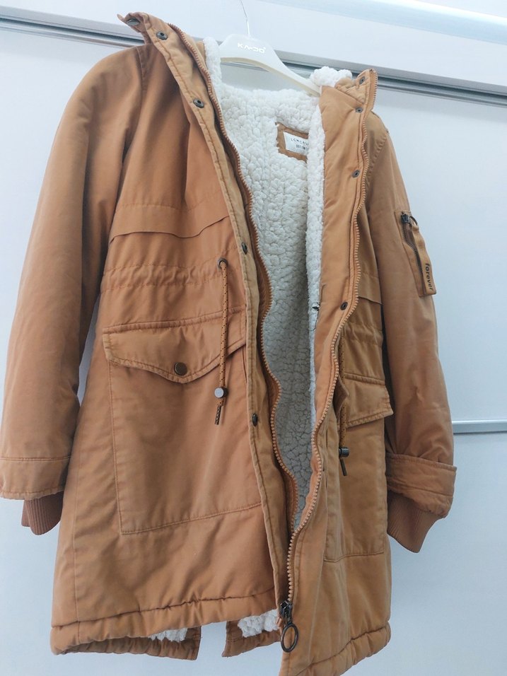 Bej renkli, bol kesim ve uzun kollu kadın mont. Notlu yaka ve kürklü iç detaylarıyla sıcak tutar. Midi boy ve sokak modasına uygun. ✨