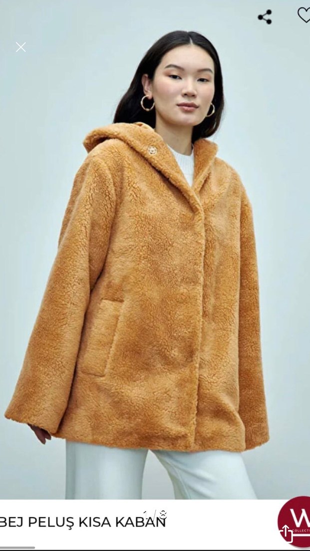 Bej midi boy, yumuşak peluş kumaştan yapılmış kadın ceketi. Kürk detaylı, kesik yaka, uzun kollu ve bol kesimdir. Günlük kullanıma uygundur w collection