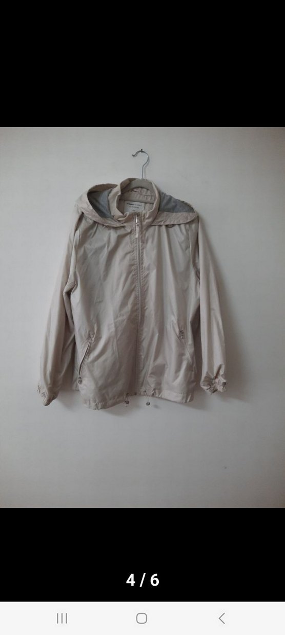 Bej renkte, uzun kollu, yüksek yakalı ve bol kesim midi ceket. Yumuşak keten kumaştan, minimalist sokak stili için uygundur. Ürün hiç kullanılmamıştır.