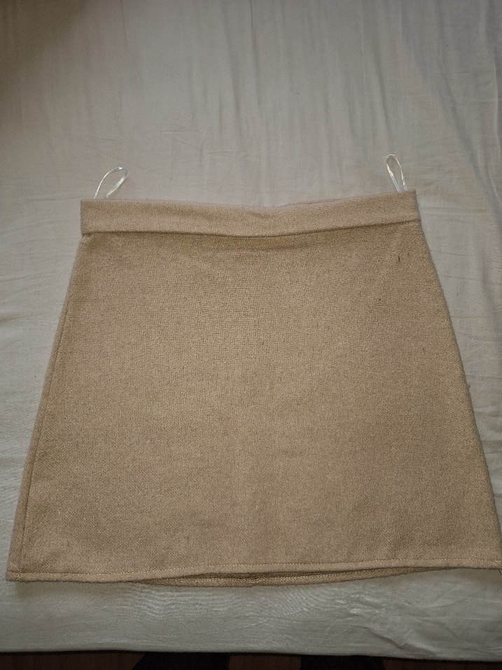 Bej renkli kadın midi etek, rahat kesim ve yumuşak sentetik kumaştan üretilmiştir, sade ve konforlu stil sunar.