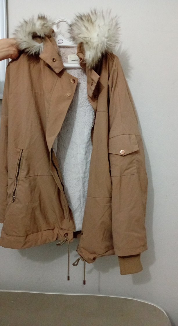 Bej renkli, kürklü detaylı, bol kesim kadın kış montu. Yumuşak ve sıcak kumaştan, uzun kollu ve midi boyda, günlük sokak tarzına uygun. ❄️