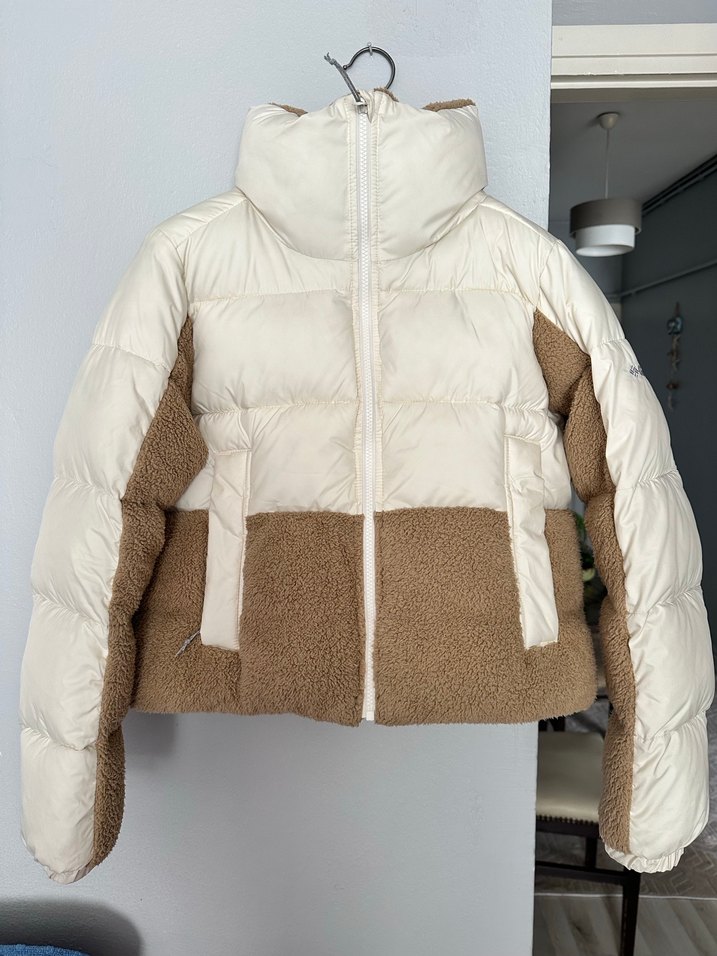 Fitted kesim, yüksek yakalı ve uzun kollu kadın kış montu. Bej renkte, yumuşak peluş ve kürk detaylı, rahat ve sokak stili uyumlu. Sadece 1 kere giyildi tam bir kış montu sıcacık tutuyor.