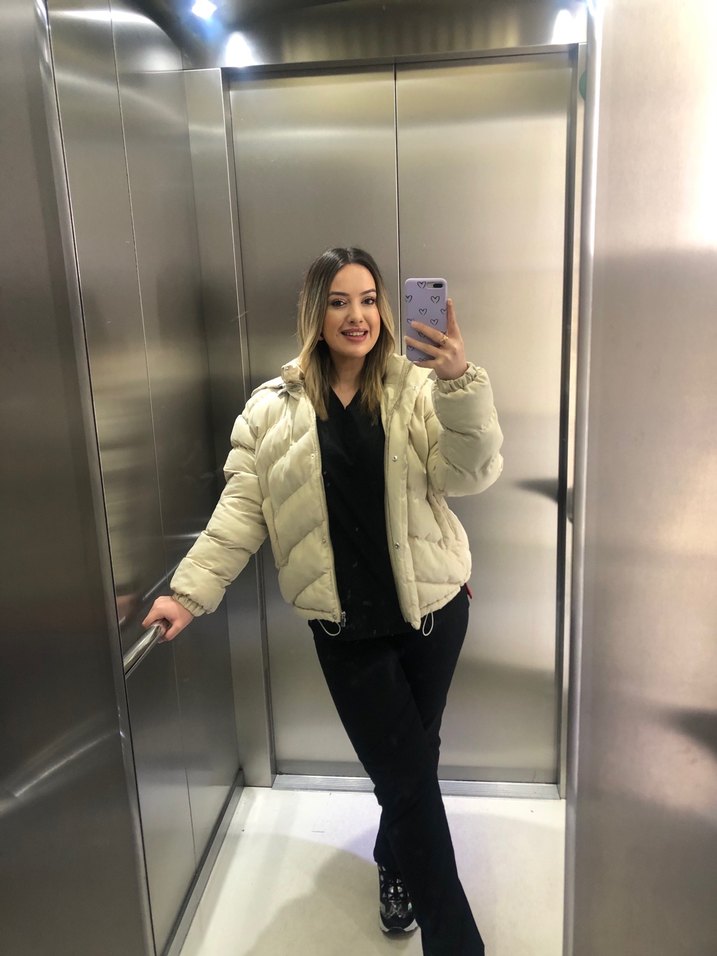 Bej renk, düğmeli ve fitted kesim kadın kışlık mont. Notched lapel yaka ve strappy kollara sahip, yumuşak ve sıcak kumaştan üretilmiştir.