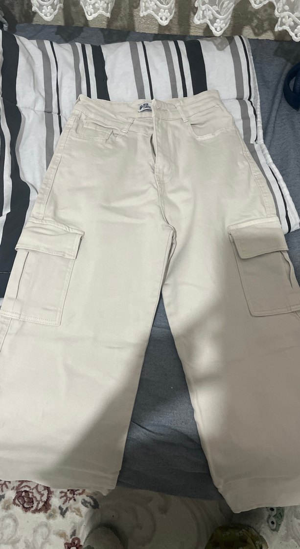 Pamuklu kumaştan yapılmış, rahat kesim bej midi kadın kot pantolon. Sade ve deseniz, kullanışlı cepleriyle günlük rahat şıklık sağlar.