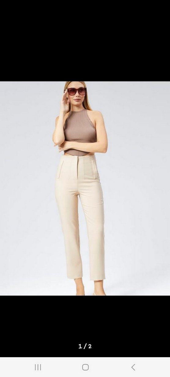 Bej renkte, midi boy, regular fit kadın kumaş pantolon. yeni etiketli