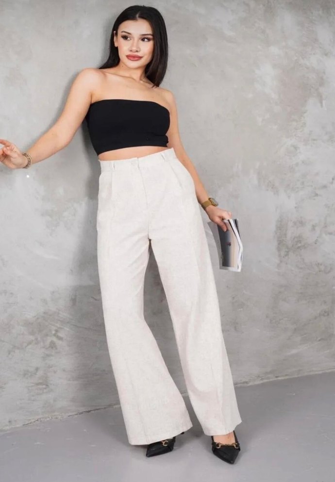 Bej renkte, pamuk kumaştan üretilmiş, regular fit ve midi boy kadın pantolon. Minimalist sokak stili ve günlük kullanıma uygun, desen içermeyen rahat bir modeldir.