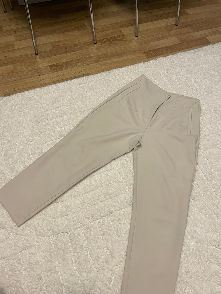 Bej renkte, midi boy, düz kesim kadın kumaş pantolon. Yumuşak sentetik kumaştan, gündelik kullanıma uygun, zahmetsiz şıklık sunar. Hiçbir kusuru yok çok severek giydim ama kilo aldığım için şu an giyemiyorum. Zara’nın bu pantolonunun kalitesini bilen bilir duruş harika. Yalnızca fermuar bozuk yeni fermuar gerekiyor