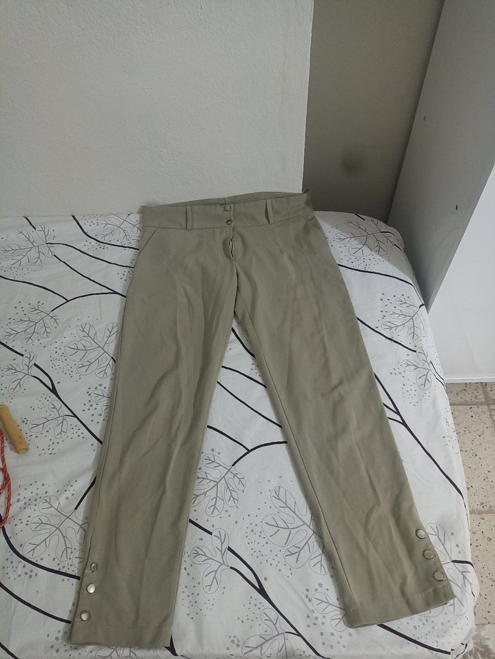 Bej renkli, düz desenli kadın midi kumaş pantolon, rahat kesimi ve sokak stiline uygun tasarımıyla dış mekan kullanımı için uygundur.