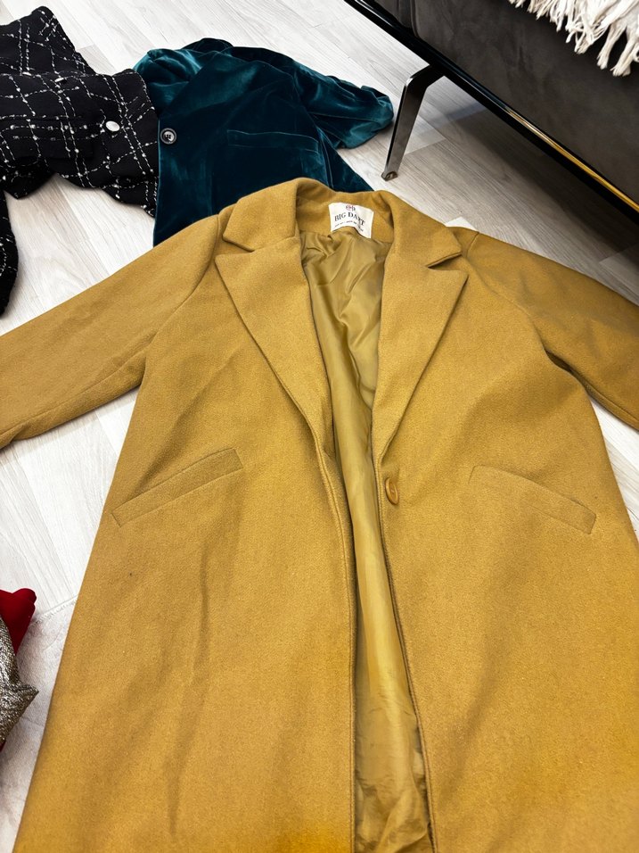 Bej renkte, düğmeli ve notched yaka detaylı süet midi kaban. Normal kesim ve uzun kollu, günlük rahat sokak stili için uygun. Kumaşı parlak ve konforlu.
