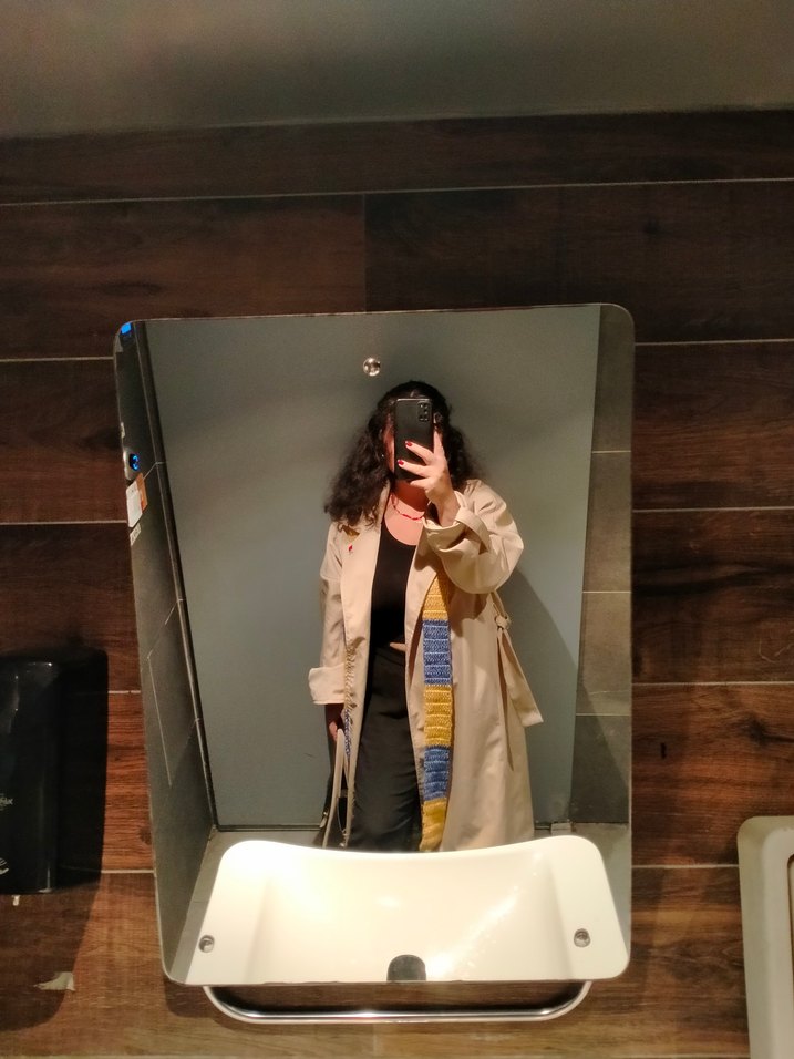 Bej renkte, pamuk kumaştan, normal kesim ve drapeli, uzun kollu midi trençkot. Günlük kullanıma uygun, şık ve modern tarzda.