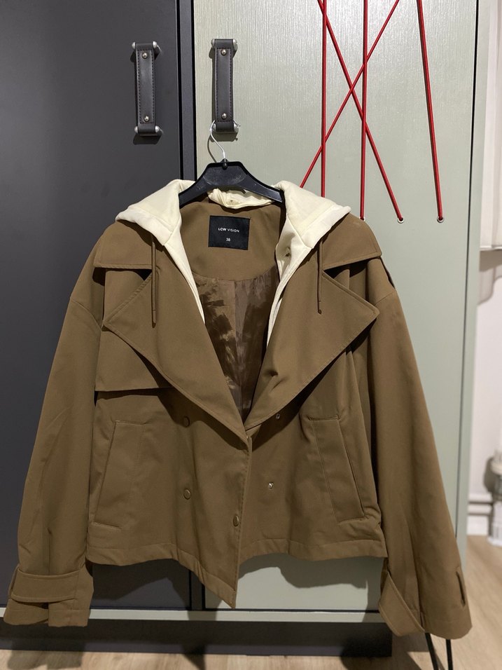 Bej renkli, düğmeli, notched lapel yakalı kadın midi trençkot. Bol kesim ve uzun kolludur. Yumuşak ve sıcak kumaştan günlük kullanım için uygundur.