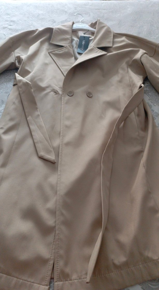 Bej Kadın Midi Trençkot Düğmeli