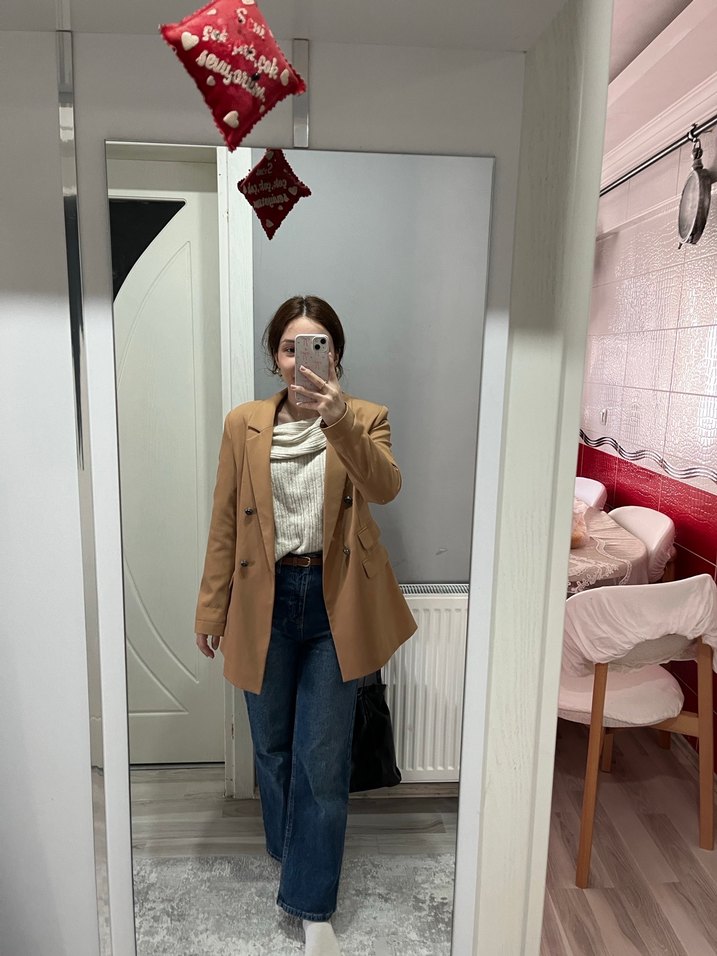 Bej renkte, yün kumaştan yapılmış, normal uzunlukta ve uzun kollu, notlu yaka detaylı, rahat kesimli blazer ceket. Günlük kullanıma uygun, zahmetsiz şıklık sunar.