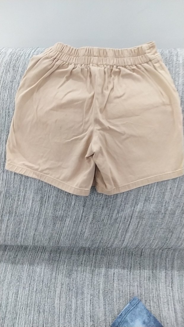 Yumuşak pamuktan bej renkli, bol kesim mini şort. Rahatlık için lastikli bel bantlı, günlük dış mekan kullanımı için uygun. şort etek