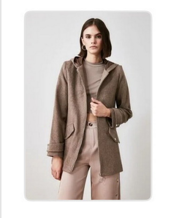 Bej renkli, yün kumaştan kısa uzunlukta kadın kaban. Notch yaka ve uzun kolludur. Günlük kullanım için rahat ve şık, sade tasarımlıdır. 1 kez giyildi hiçbir kusuru yoktur