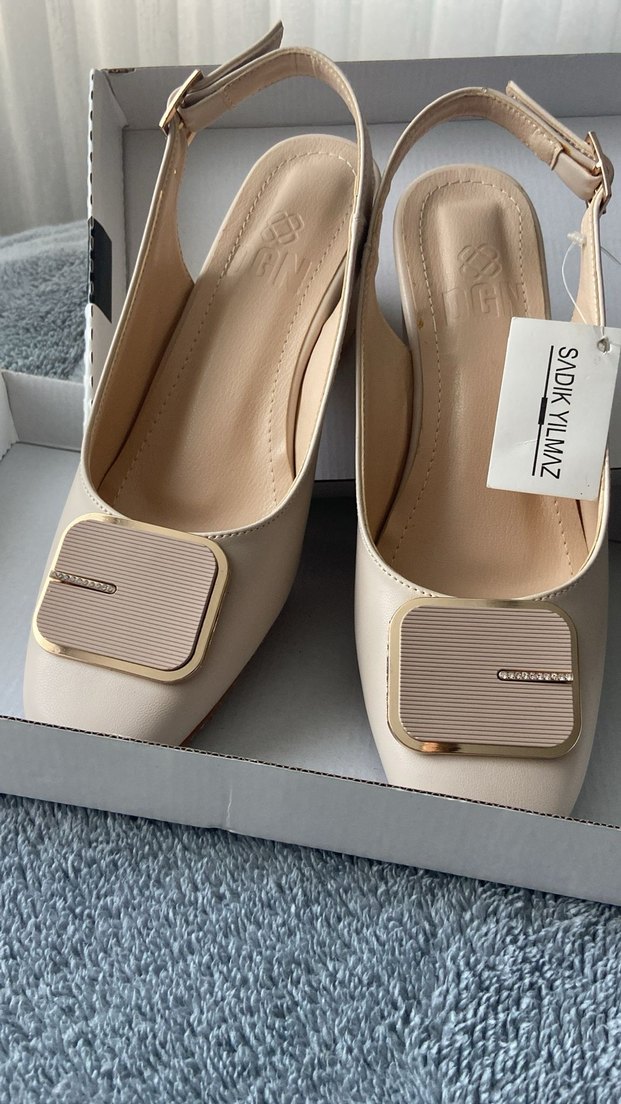 Bej Kadın Minimalist Tokalı Topuklu Sandalet