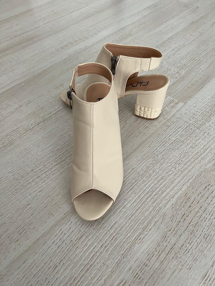 Bej renkte, tokalı kayışlı, blok topuklu kadın sandalet. Minimalist ve çağdaş tasarıma sahip, günlük kullanıma uygun rahat bir model.