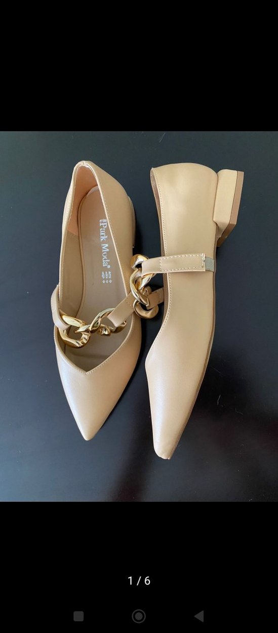 Bej renkte, blok topuklu kadın babet. Yılan desenli, tokalı kayışlı, yumuşak kauçuk malzemeden yapılmıştır. Günlük modern klasik tarz için uygun.