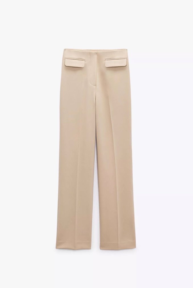 Bej renkli, normal kesim, düz desenli sentetik kumaştan yapılmış kadın kumaş pantolon.normcore tarzıyla ofis için uygundur. 1 kere kullanıldı