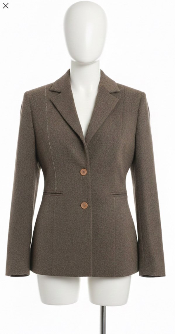 Bej renkli, düğmeli, uzun kollu kadın blazeri. Düz kesim ve klasik yaka ile ofis ortamına uygundur. Sentetik kumaştan üretilmiştir.