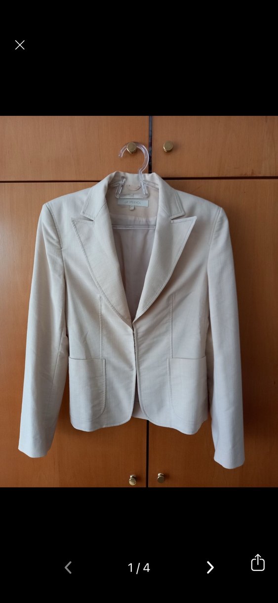 Bej renkte, düğmeli ön kapamalı, kesik yaka ofis takım elbise. Uzun kollu, regular fit ve ipeksi dokulu kumaşla modern klasik tarzda.