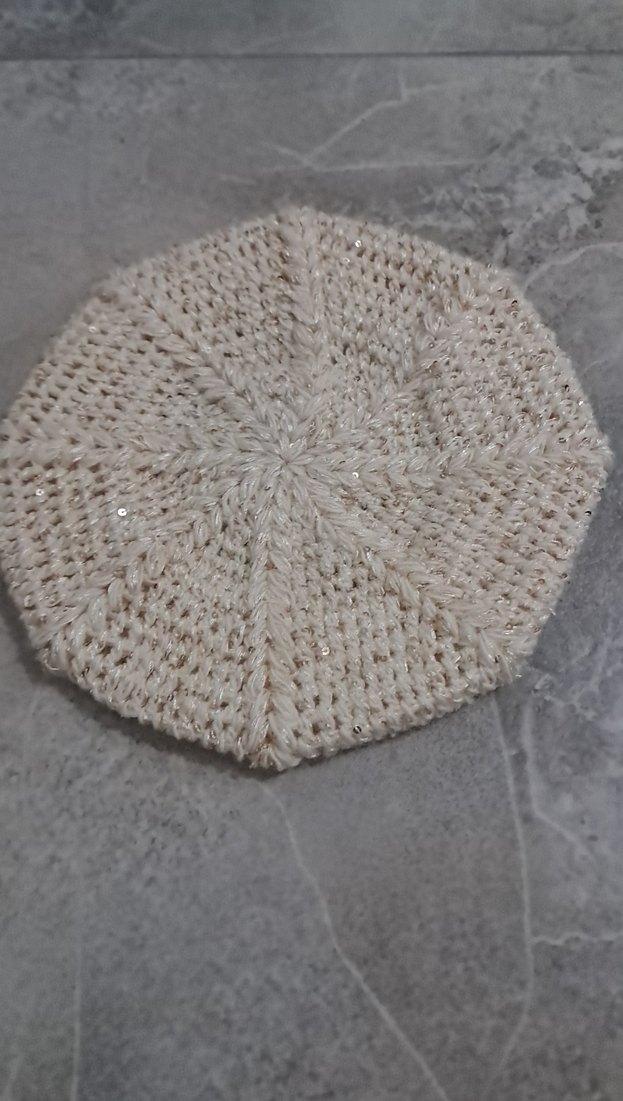 Bej renkte, örgü detaylı ve hafif parlaklık içeren kadın bere. Rahat ve bohem tarzda, sade ve temel kullanıma uygun.