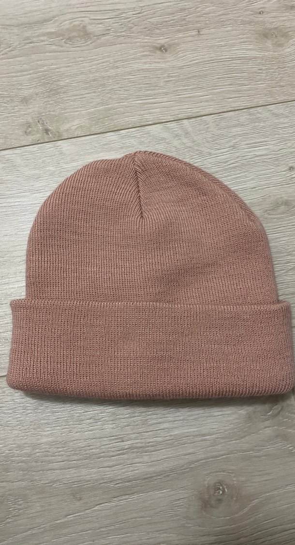 Yumuşak yünden örülmüş bej kadın bere, pastel tonlarda rahat ve temel sokak stili sunar.