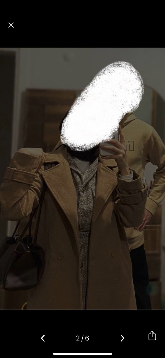 Bej renkli kadın kaban, uzun kollu ve boğazlıdır. Yumuşak ve sıcak kumaştan yapılmış, şişkin tasarıma ve midi boy uzunluğa sahiptir. Sokak stili ve avangard moda anlayışını yansıtır.