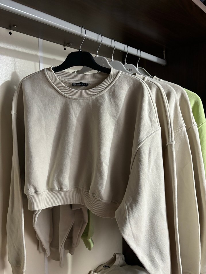 Bej Kadın Oversize Keten Sweatshirt