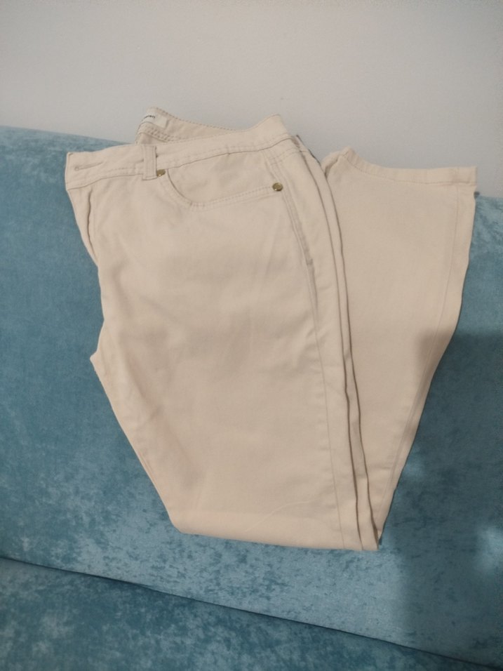 Bej renk, pamuk kumaştan, normal boy ve regular fit kadın pantolon. Düz ve sade tasarımı günlük kullanım için uygundur.